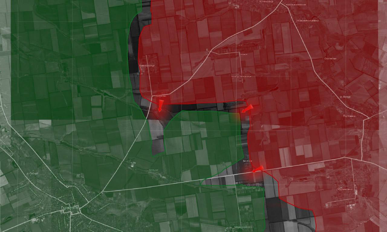 В то же время южнее российские войска продвинулись в окрестностях Малиновки и зашли в Веселое и Зеленый Гай, а также начали развивать атаки к Затишью и расположенному за ним Гуляйполю.