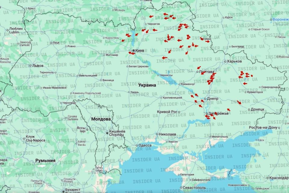 Они летят в направлении: Коростеня (Житомирская область);Иванкова (Киевская область);Чернигова (Черниговская область);Нежина (Черниговская область);Прилук (Черниговская область);Лубен (Полтавская область);Зинькова (Полтавская область);Чутово...
