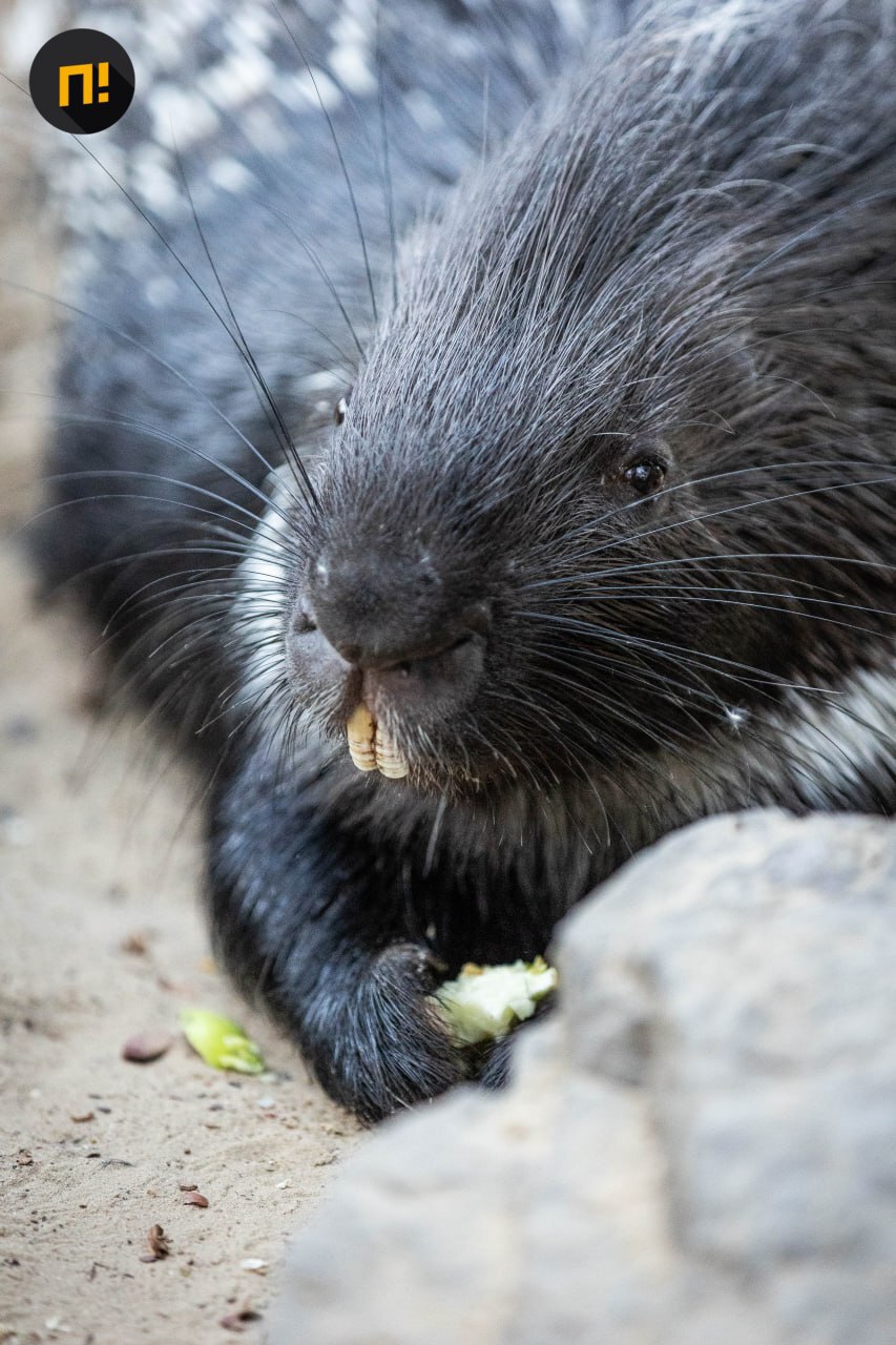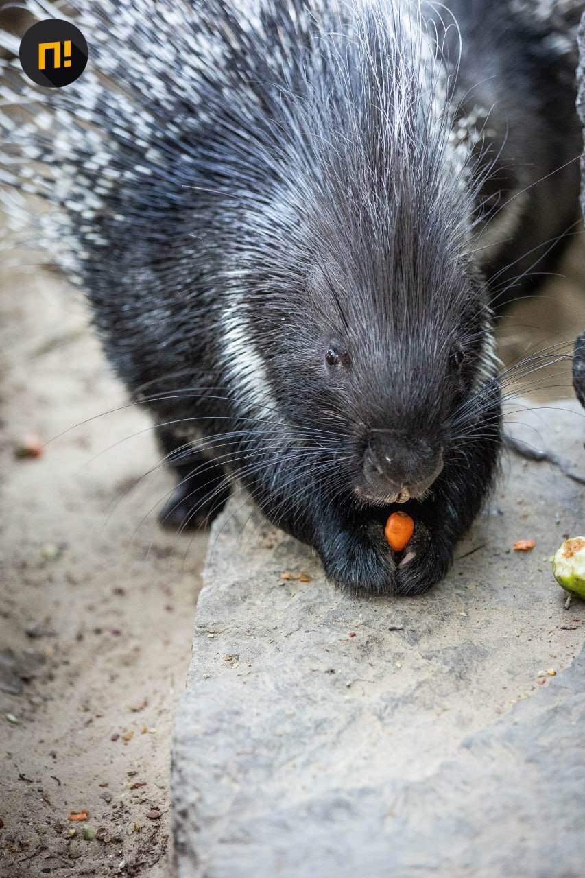 Но и дикобразы ценят личное пространство. Так, Сенька установил время нахождения в своём «гроте» — 3 минуты. Если кипер надоел, он начинает стучать задней лапой и трещать иглами.