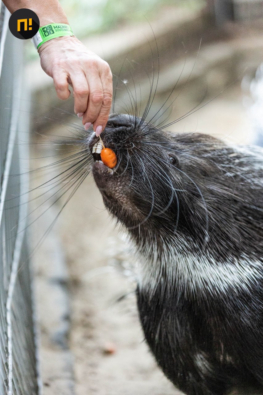Животных зовут Сенька и Принцесса. Они достаточно общительные, киперы их гладят, а ещё они ежедневно и ночью чистят зубы веточками. Кипер Анатолий Смирнов рассказал изданию «Подъём», что работает в парке 3,5 года и уже давно подружился с дикобразами. На видео он принёс им бананы и морковку.
