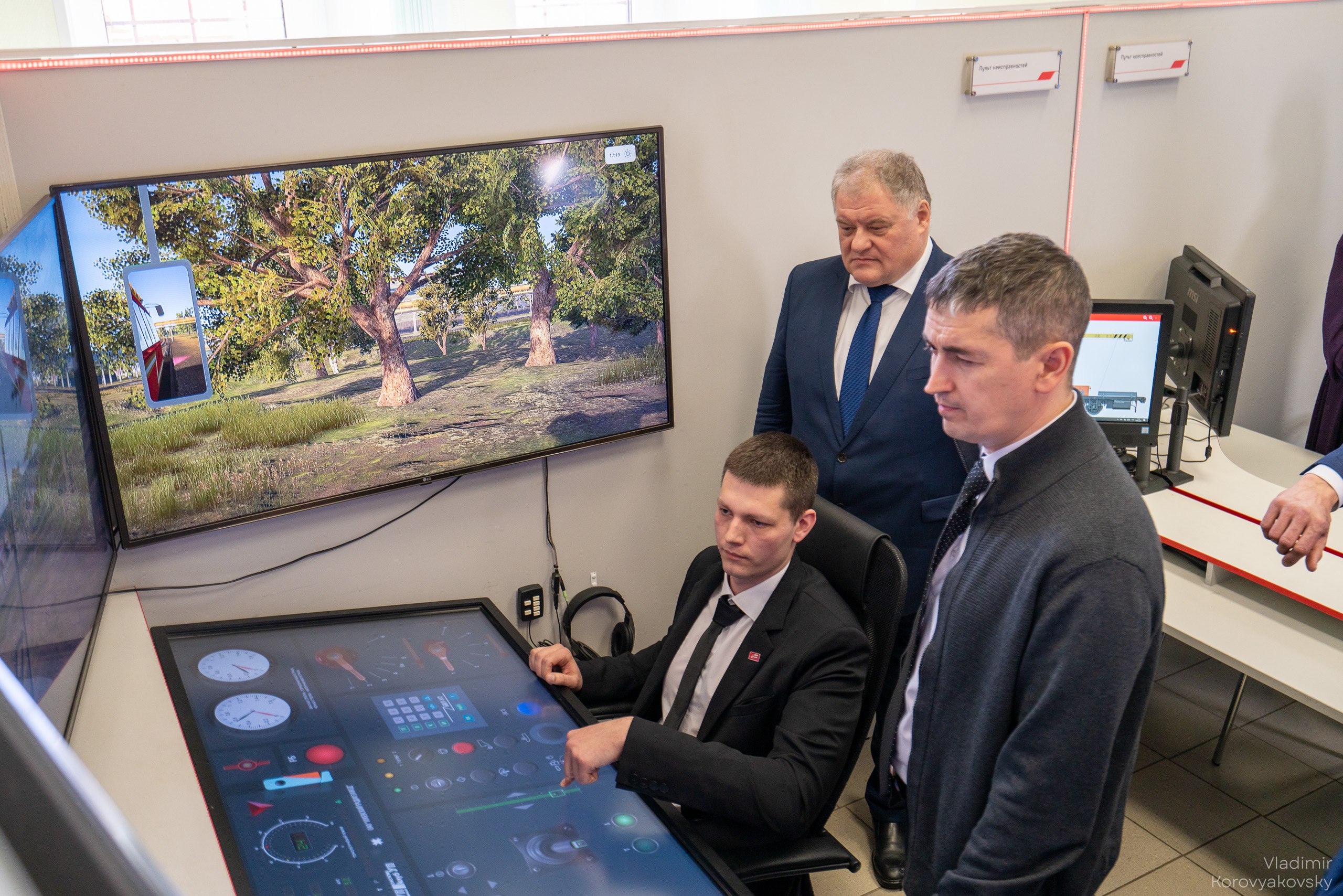 В учебном классе установлен «боевой» тренажёр погрузочно-транспортного мотовоза МПТ-4. Симулятор помогает формировать устойчивые навыки управления и отрабатывать действия в нештатных ситуациях на путях.