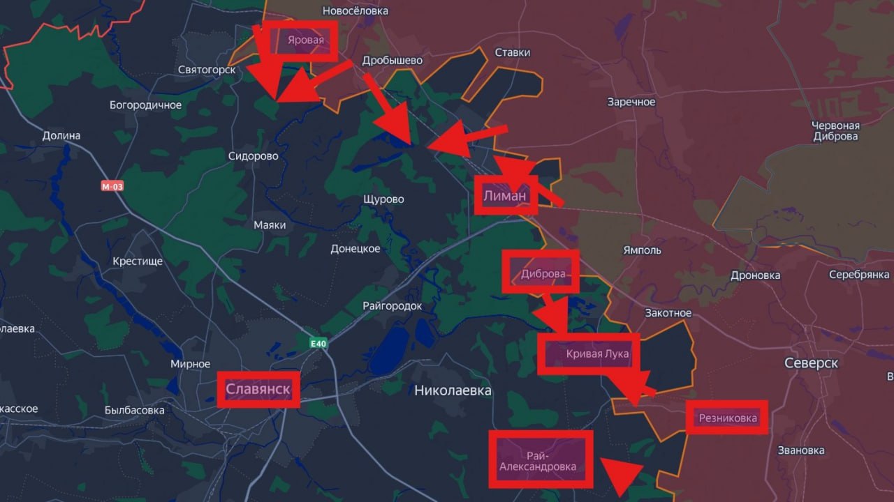 Хорошая новость: подразделения группировки «Запад» освободили Яровую! В ходе решительных действий нанесли поражение противнику в районах Лозового, Яцковки, Рубцов, Соснового, Святогорска и Красного Лимана. Противник потерял свыше 180 человек, три бронемашины, 17 автомобилей, две пушки (в том числе М777) и три склада с боеприпасами. Южнее Святогорска работаем вдоль Северского Донца, пытаемся заходить в Татьяновку — враг перебрасывает туда резервы.